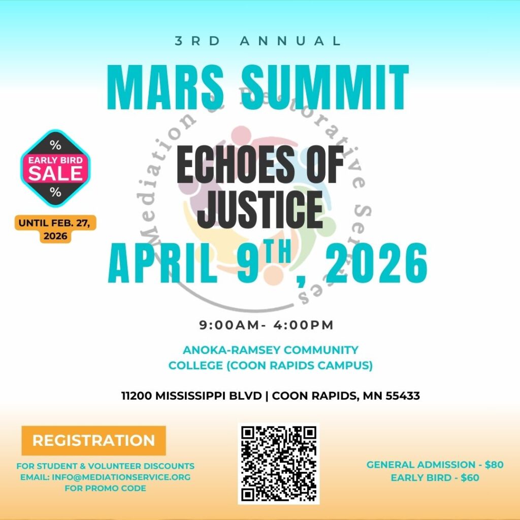 Echoes of Justice explores how acts of fairness, accountability, and restoration create lasting impact within individuals, communities, and systems. The theme highlights how restorative practices do more than resolve immediate harm—they send ripples forward, shaping trust, healing relationships, and strengthening community well-being over time. This year’s summit will reflect on the voices, stories, and outcomes that continue to resonate long after mediation and restorative processes take place, emphasizing justice not as a single moment, but as an ongoing, shared responsibility.